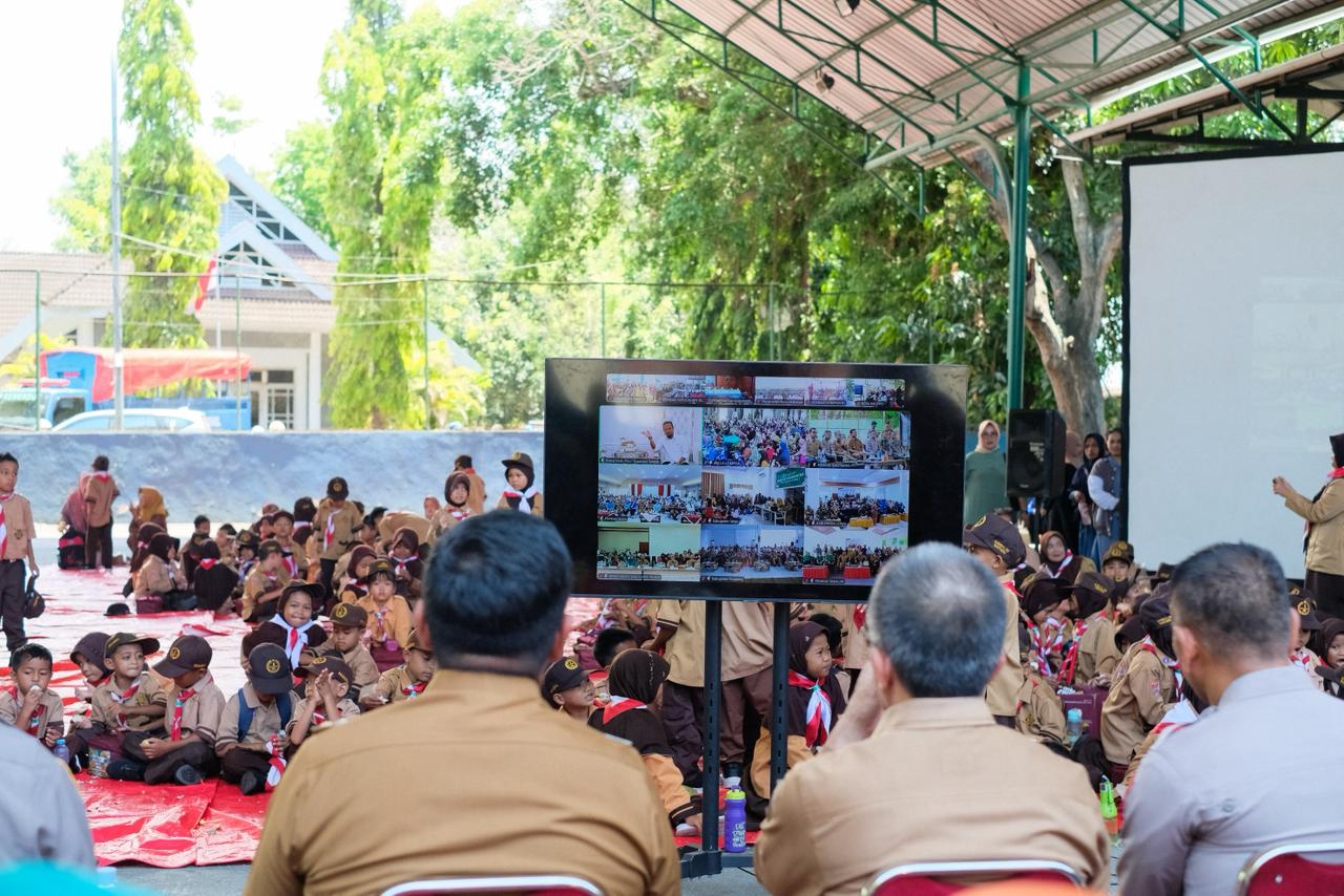 SIRYATIMUR.ID.BANTAENG – Bupati Bantaeng, M. Fathul Fauzy Nurdin, berbaur dengan 400 siswa yang terdiri 350 siswa Sekolah Dasar dan 50 siswa Taman Kanak-kanak dalam pelaksanaan Gerakan Gemar Makan Telur, yang digelar di Lapangan Tenis Pelti Bantaeng, Jl. Raya Lanto, Selasa, 14 Oktober 2025.