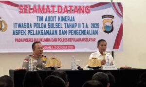 SURYATMUR.ID.KEP. SELAYAR – Kapolres Kepulauan Selayar, AKBP Didid Imawan, S.I.K., S.H., M.Tr.Mil., memimpin pelaksanaan Apel Siaga dalam rangka memperingati satu tahun pemerintahan Presiden Prabowo Subianto dan Wakil Presiden Gibran Rakabuming Raka. Kegiatan berlangsung di halaman Mapolres Kepulauan Selayar, Senin (20/10) pagi.