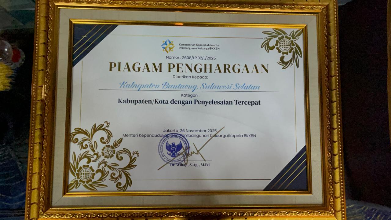 Penghargaan yang diterima oleh Pemkab Bantaeng adalah penghargaan dengan kategori Kabupaten/Kota dengan Penyelesaian Tercepat. Bantaeng berada pada urutan keempat nasional tercepat dalam pemutakhiran pendataan kependudukan tahun 2025.