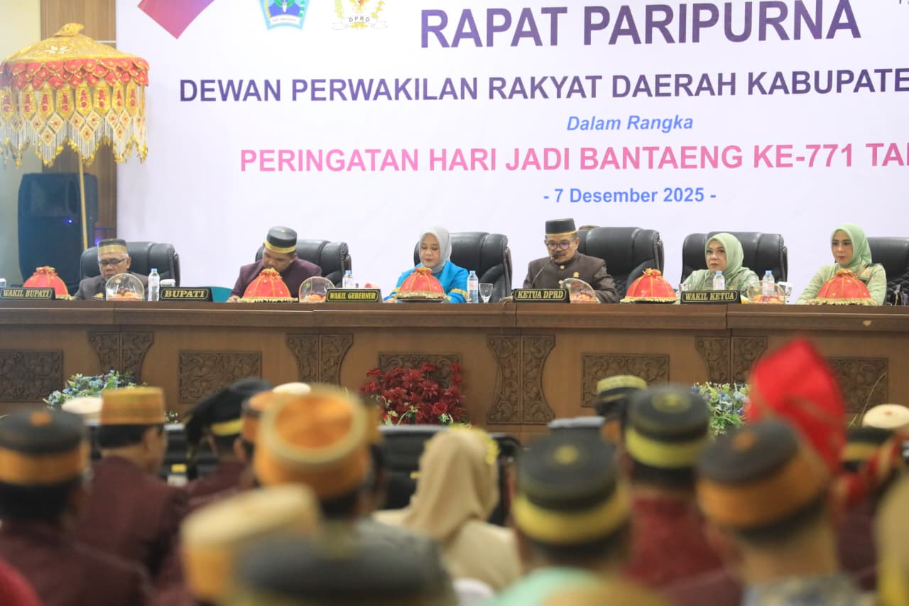SURYATIMUR.ID.BANTAENG – Jatuh pada tanggal 7 Desember, tahun ini Kabupaten Bantaeng menginjak usianya yang ke-771. Sehubungan dengan itu, Pemerintah Kabupaten Bantaeng, menggelar Rapat Paripurna dalam rangka memperingati Hari Jadi Bantaeng ke-771 yang digelar di Gedung Balai Kartini Kabupaten Bantaeng, Minggu, 7 Desember 2025.