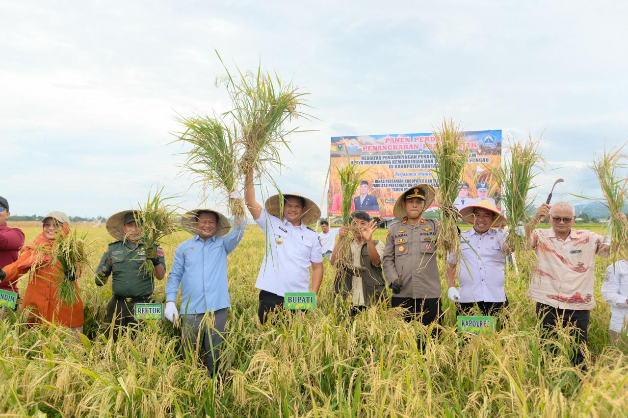 SURYATIMUR.ID.BANTAENG – Bupati Bantaeng, M. Fathul Fauzy Nurdin menghadiri kegiatan Panen Perdana Penangkaran Padi Genjah dan Jagung dalam rangka pendampingan perbenihan padi guna mendukung kemandirian dan swasembada pangan di Kabupaten Bantaeng. Kegiatan ini merupakan hasil kerja sama antara Dinas Pertanian Kabupaten Bantaeng dan Fakultas Pertanian Universitas Hasanuddin (Unhas) Tahun Anggaran 2025 yang dilaksanakan di Jalan Lingkar Barat, samping Kantor KPU Bantaeng, Rabu 28 Januari 2026.