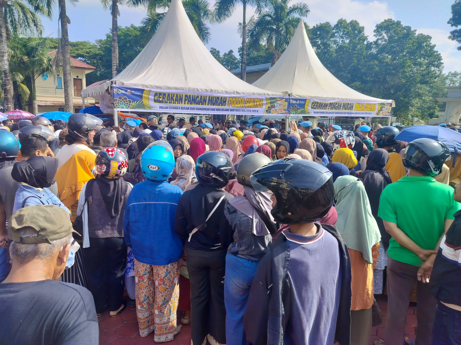 SURYATIMUR.COM. KENDARI – Gerakan Pangan Murah (GPM) yang digelar Polda Sulawesi Tenggara (Sultra) di Lapangan Patung Gajah Mada Polda Sultra diserbu warga yang ingin mendapatkan kebutuhan pokok dengan harga terjangkau, Senin (16/3/2026).