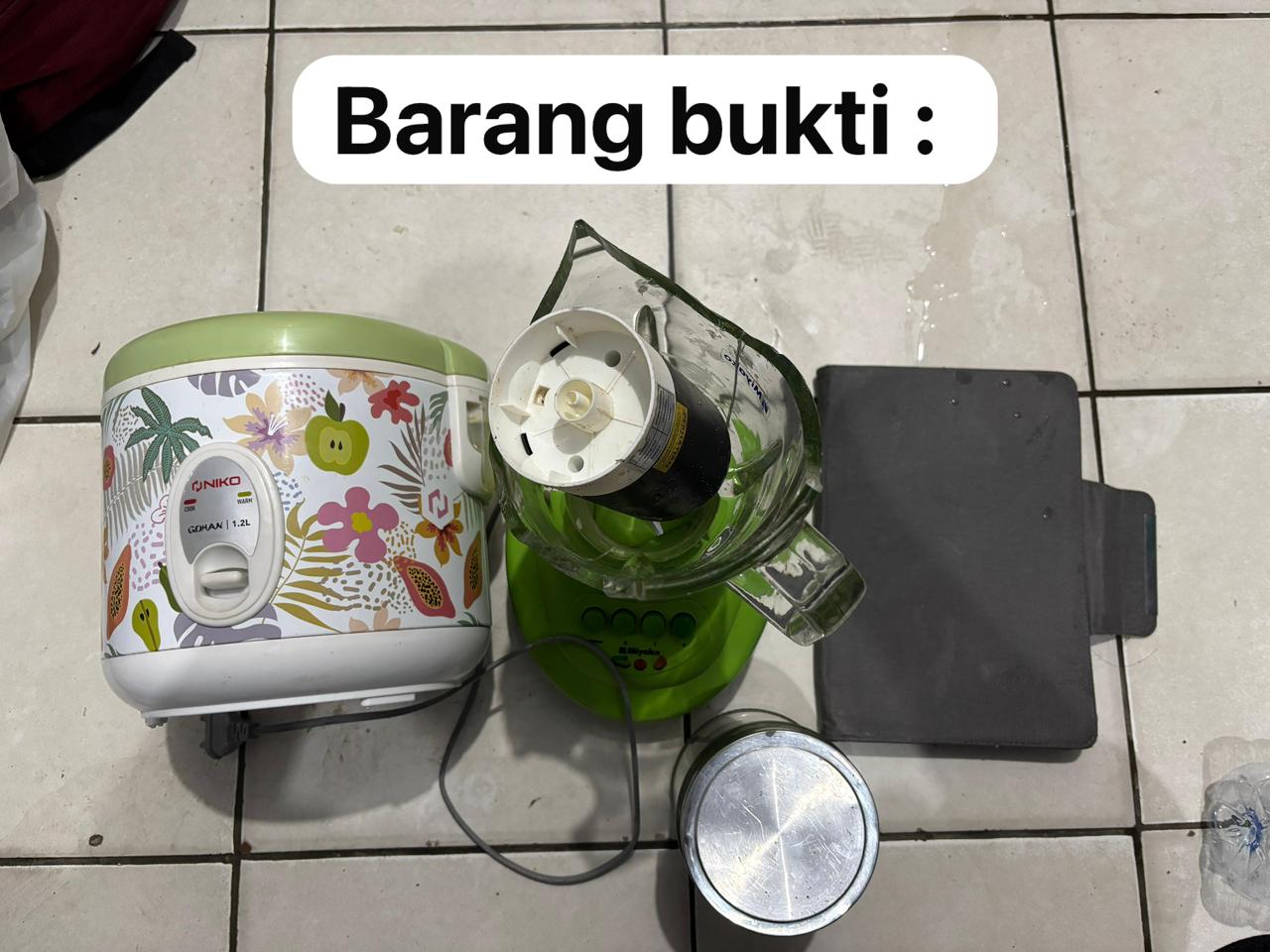 Polisi turut mengamankan sejumlah barang bukti, di antaranya rice cooker, blender, toples, dan case tablet.